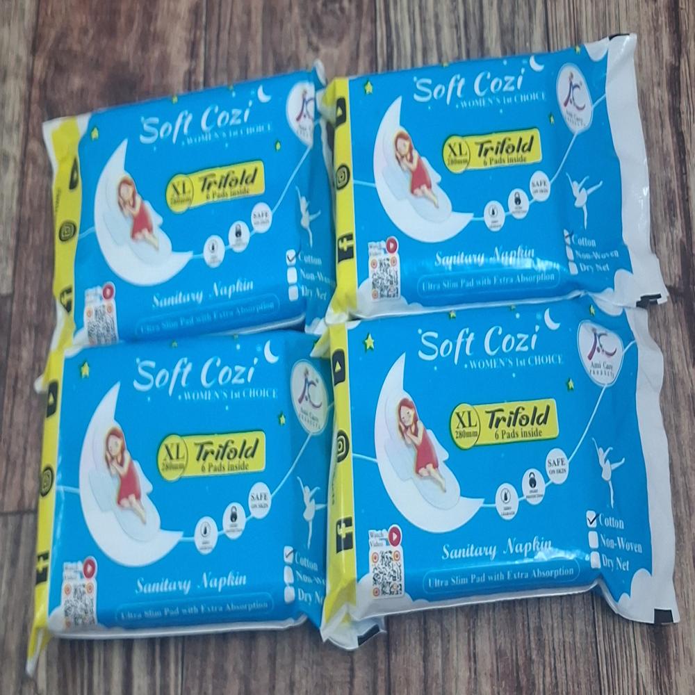 These are Trifold sanitary napkins The napkins consists of seven layers: 1) The TOP SHEET NON WOVEN WHICH IS SKIN FRIENDLY 2) ANION CHIP THIS ACTS AS AN MEDICATED LAYER WHICH PREVENTS FUNGUS AND INFECTIONS 3) TISSUE THIS HELPS IN ABSORBTION AND PREVENTS WETNESS 4) SAP SHEET IT ABSORBS LIQUIDS AND CONVERTS IT INTO GEL FORM 5) AGAIN IT CKMES TISSUE 6) P.E THIS PREVENTS LEAKAGE AND STAINING THE CLOTH 7) RELEASE PAPER THIS IS RELEASED FROM THE NAPKIN AND THROWN THAN THE NAPKIN WILL BE STUCK IN THE PANTY